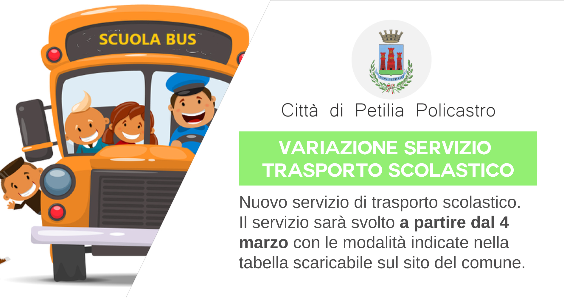NUOVO SERVIZIO DI TRASPORTO SCOLASTICO